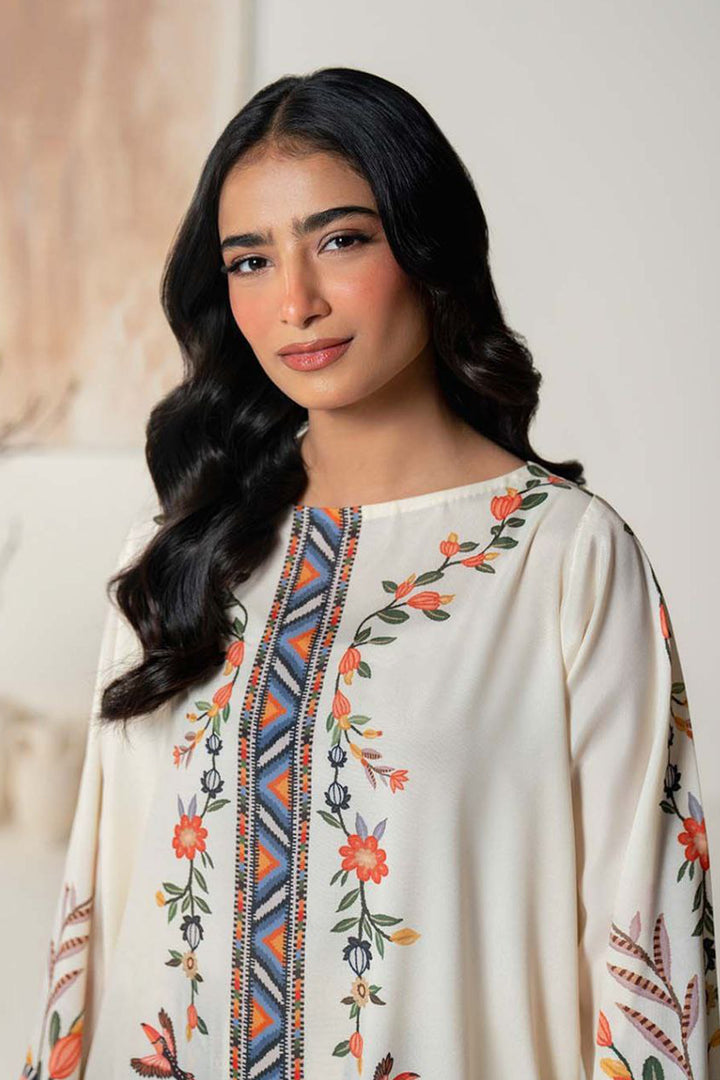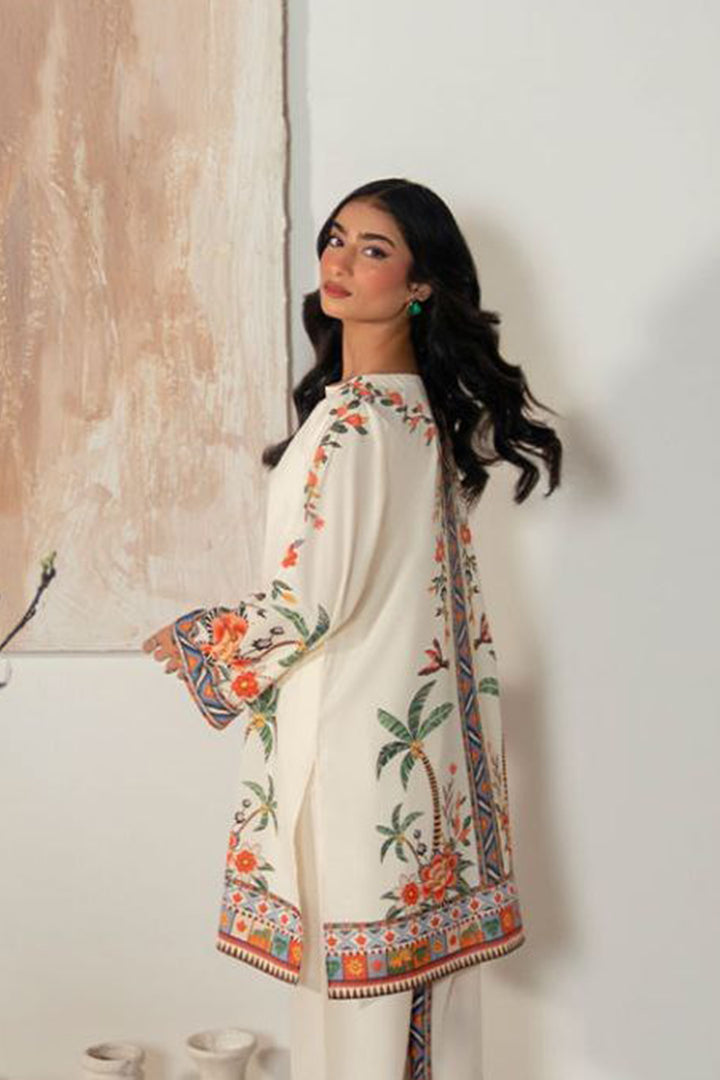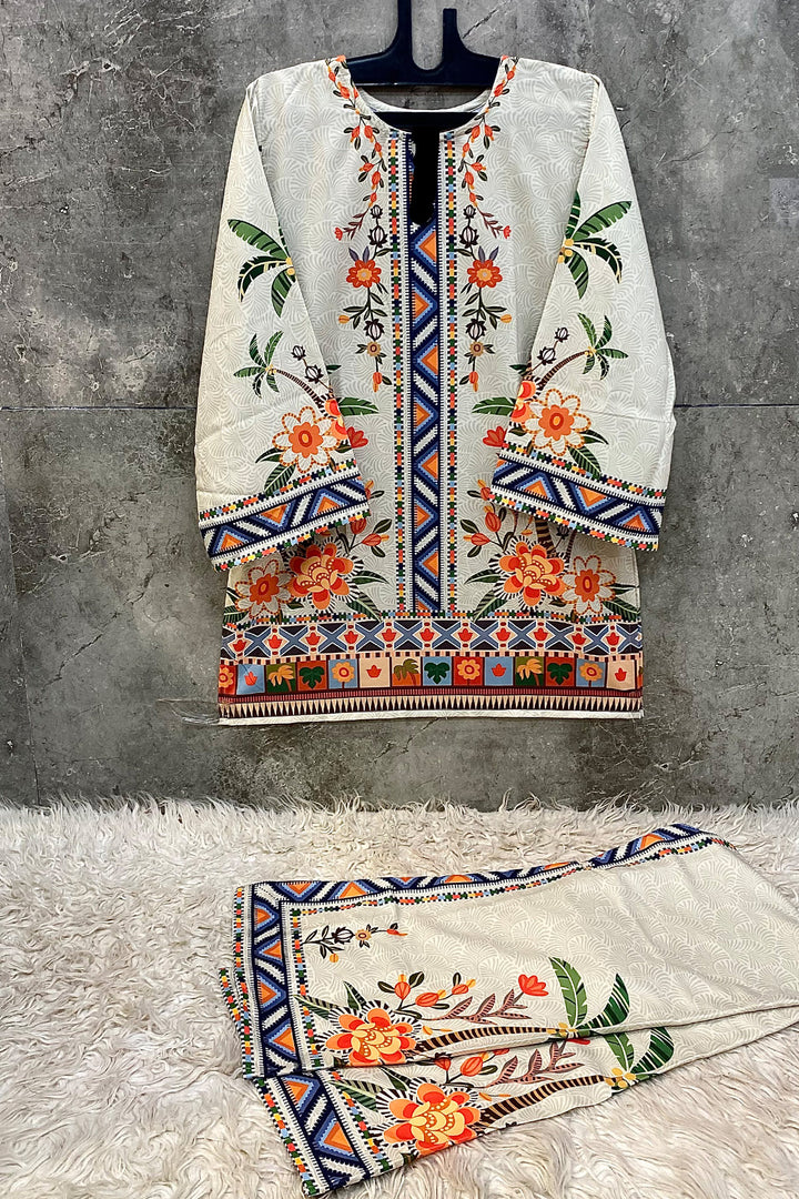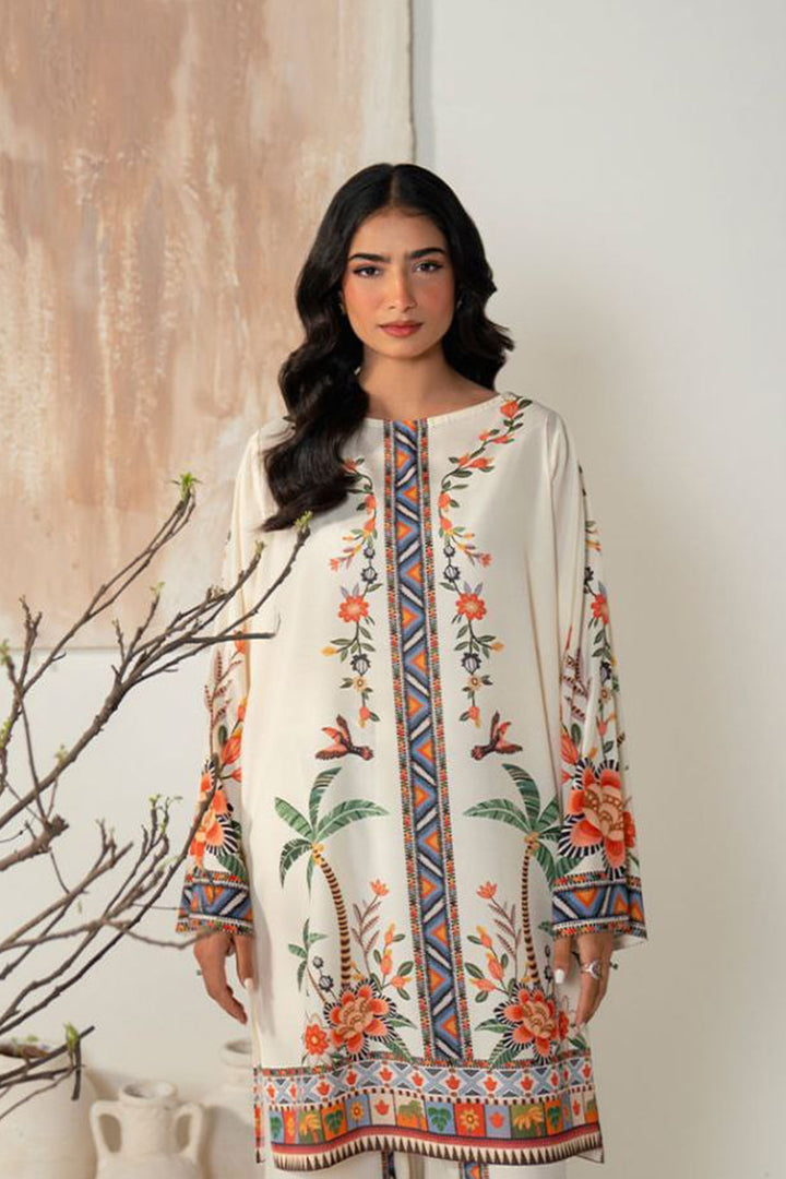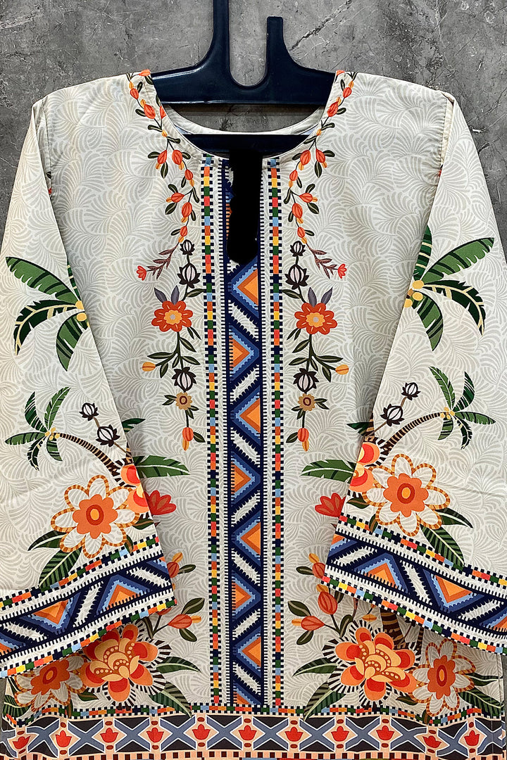 Cream Printed Tropical Co-Ord Set With Palm & Floral Motifs Soft Cotton Blend Readymade