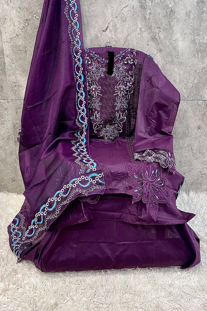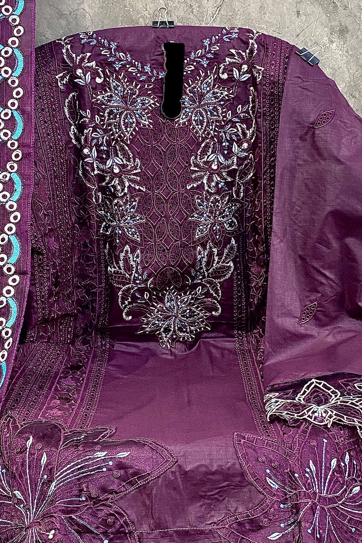 Dark Wine Embroidered Pakistani Salwar Kameez With Beautiful Imported Chex Dupatta