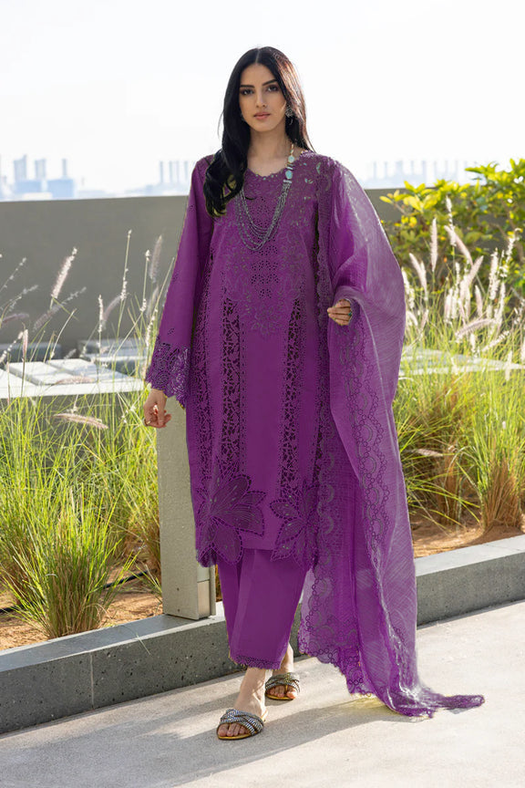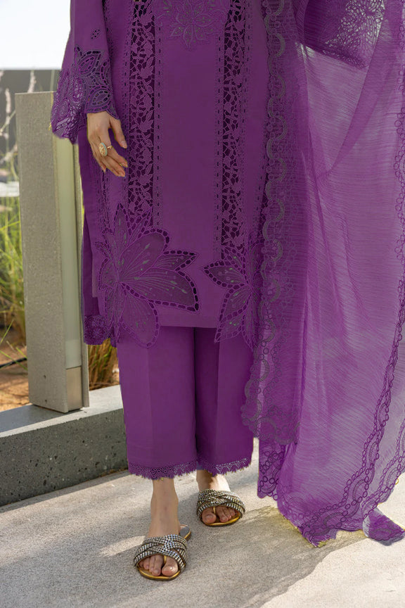 This dark wine Pakistani salwar kameez features intricate embroidery and includes a beautiful imported chex dupatta, ideal for special events.