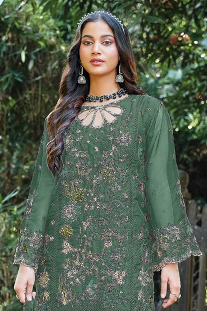 Deep Forest Glamour – Pakistani Organza Suit in Bottle Green With Soft Dupatta