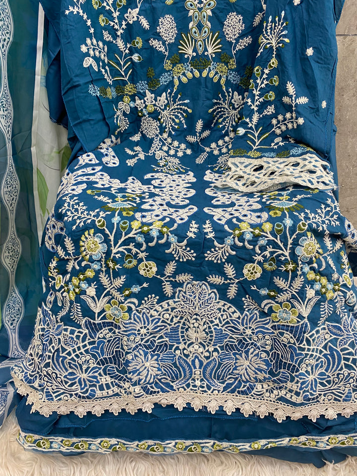 - Top Fabric : Heavy Rayon ( With Beautiful Embroidery Work + Round Cut Work )