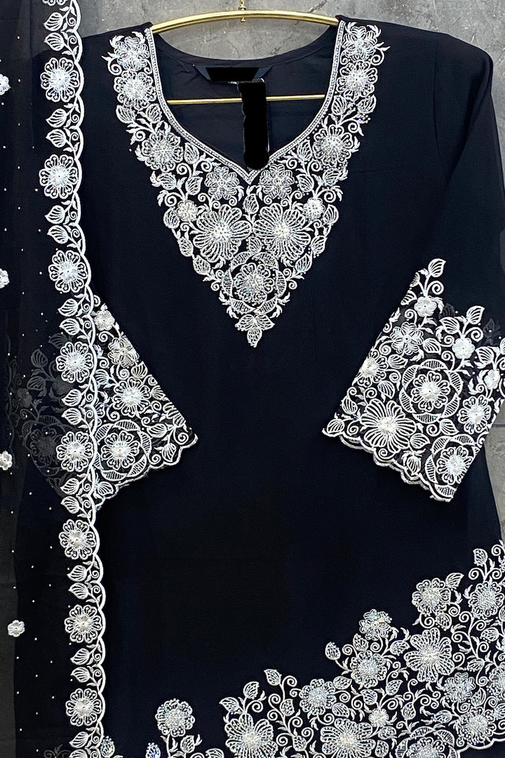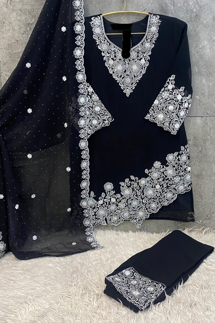 Festive Wear Pakistani Readymade Chikankari Salwar Kameez Black With Georgette Dupatta