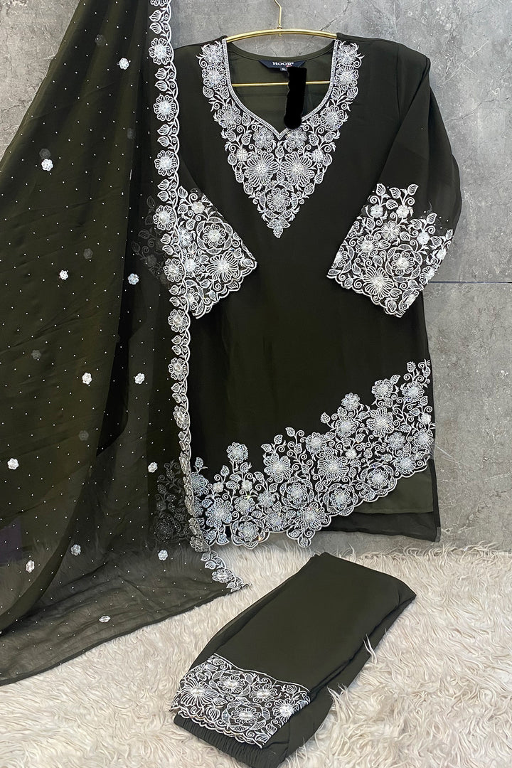 Festive Wear Pakistani Readymade Chikankari Salwar Kameez Mehndi With Georgette Dupatta