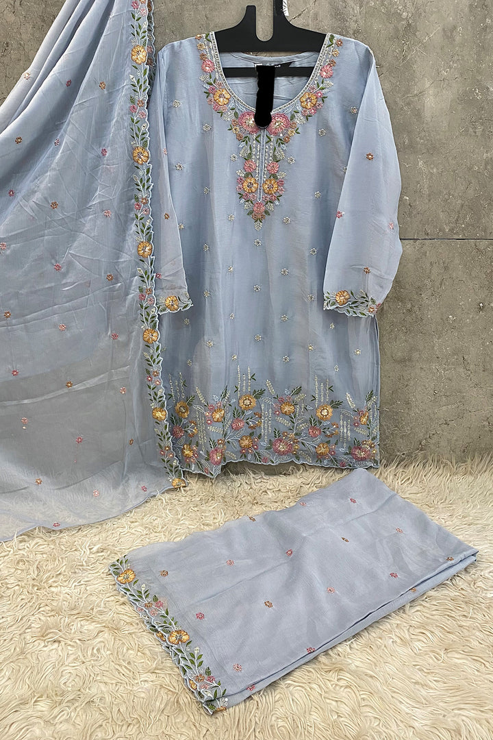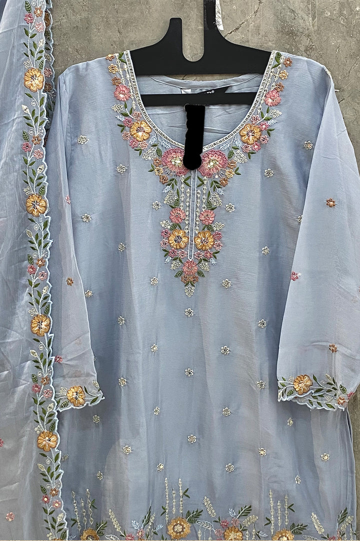 Full Stitched Palazzo Heavy Chiffon Ice Blue Pakistani Salwar Kameez With Chiffon Dupatta