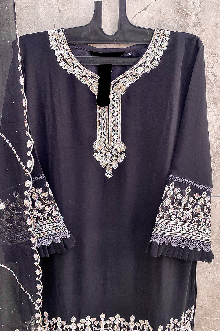 Fully Stitched Heavy Black Georgette Embroidered Pakistani Salwar Suit With Beautiful Dupatta