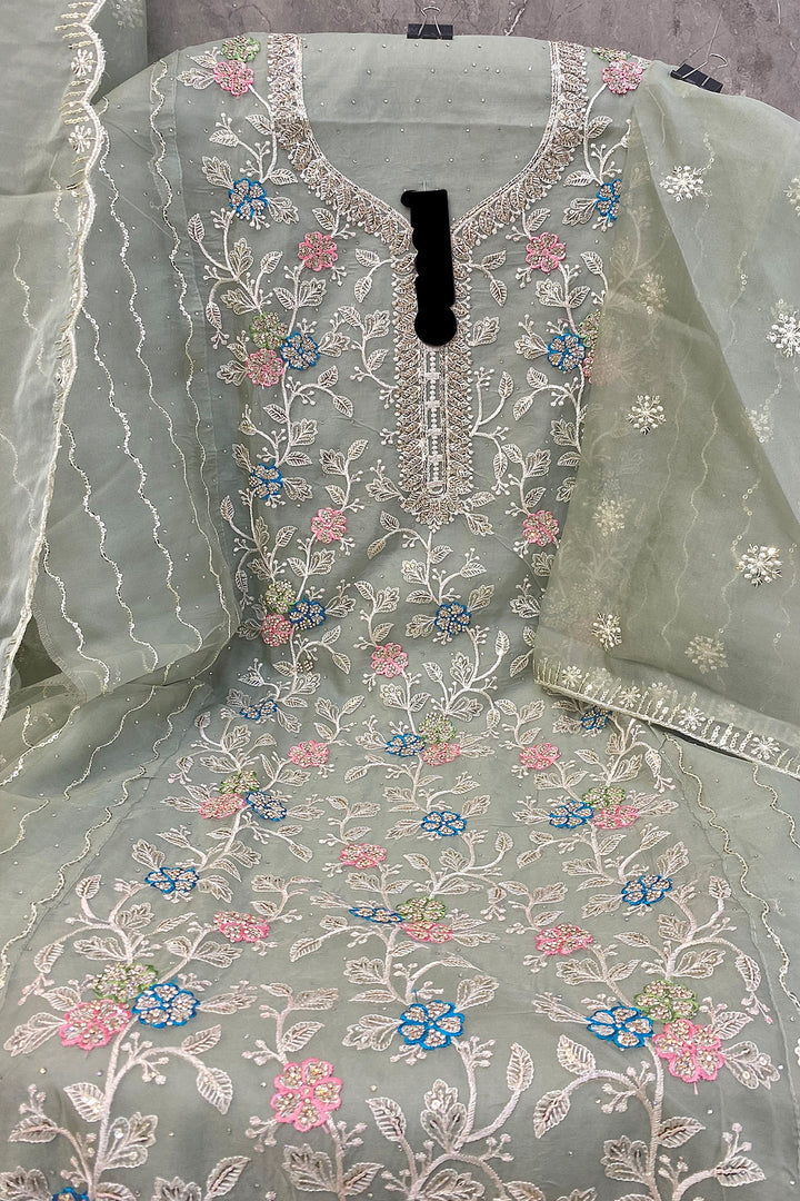 Heavy Organza Khatli Work Light Pista Pakistani Salwar Kameez With Pretty Organza Dupatta
