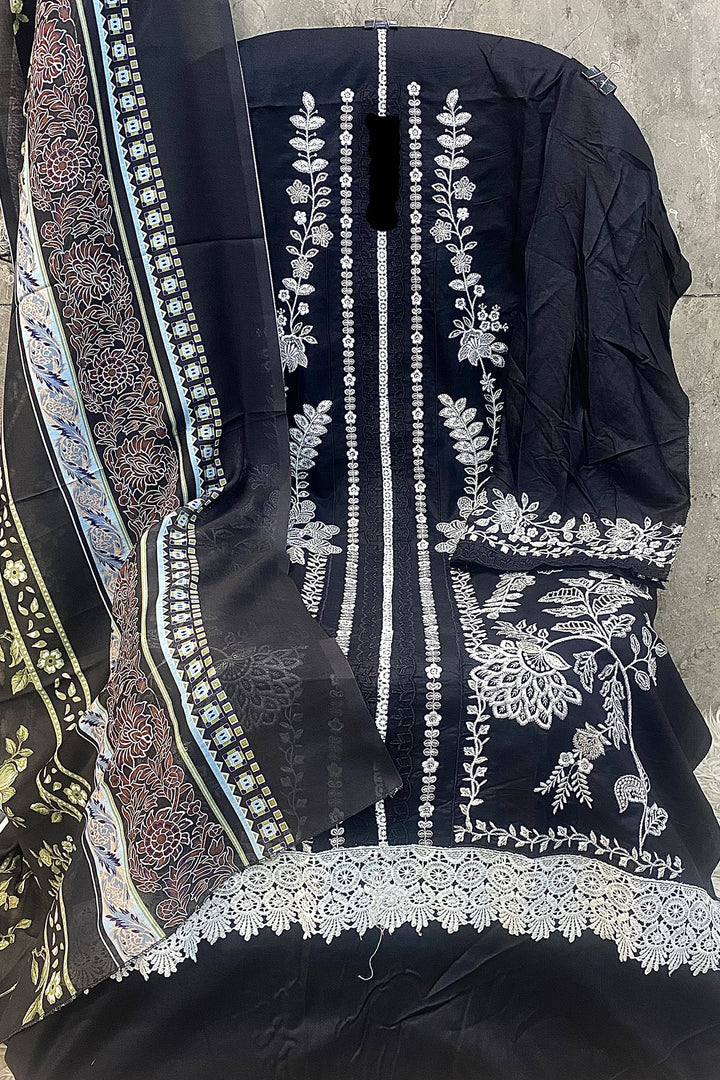 Heavy Rayon Embroidered Black Pakistani Salwar Kameez With Cotton Printed Dupatta