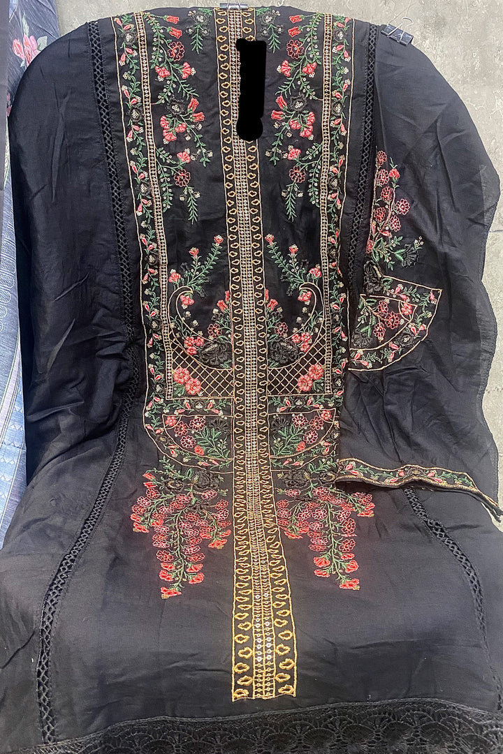 Heavy Rayon Long Black Pakistani Salwar Kameez With Cotton Printed Dupatta