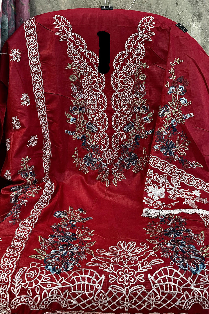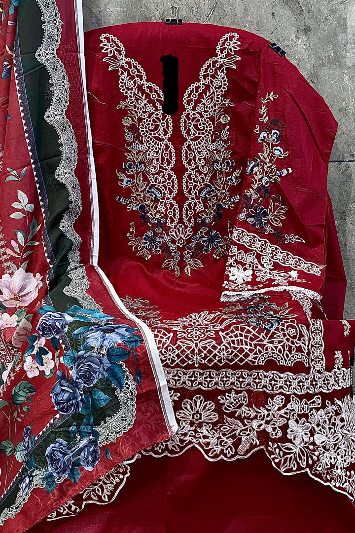 Hoortex Pakistani Collection Red Heavy Cotton Printed Salwar Kameez With Cotton Printed Dupatta