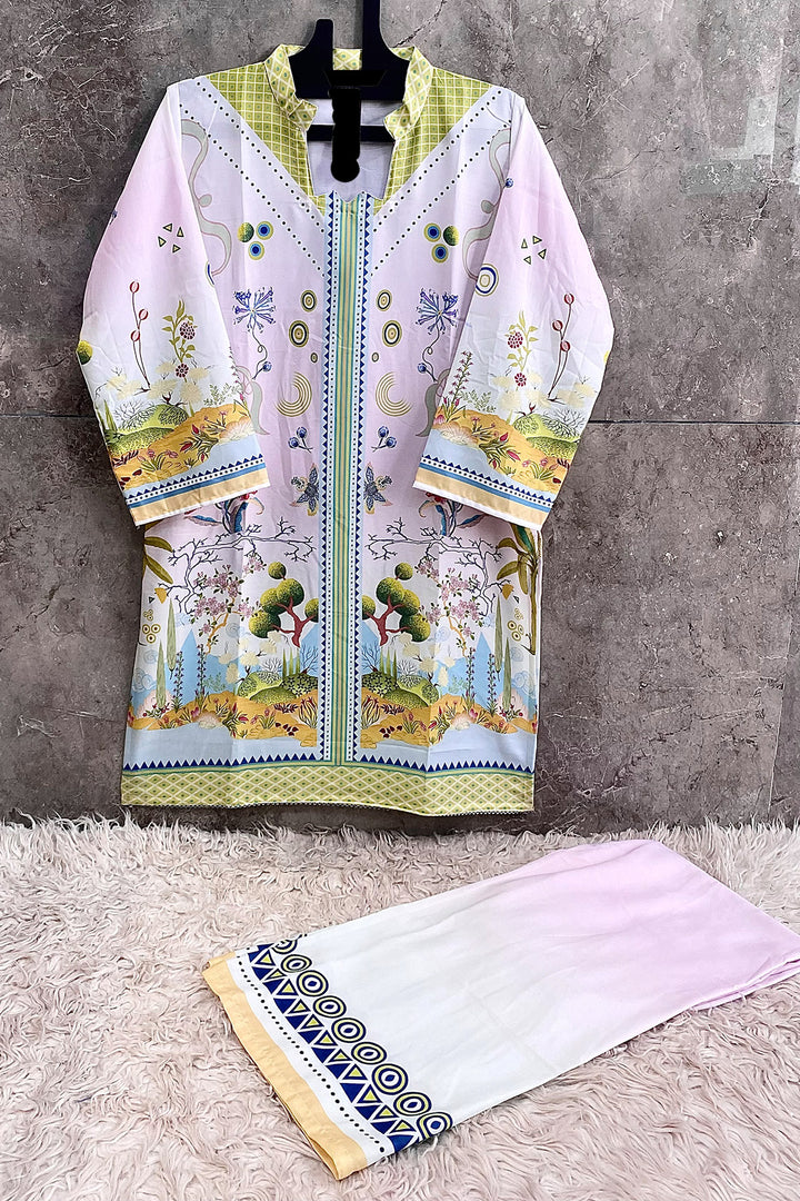 This light pink pastel kurta and palazzo set features a delicate print, offering a stylish and comfortable co-ord option for women. Perfect for casual or semi-formal occasions.