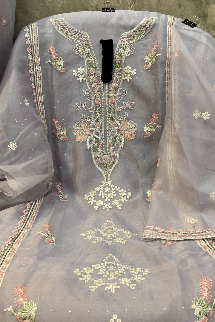 Light Purple Organza Pakistani Salwar Kameez With Khatli Work & Beautiful Designed Dupatta Work