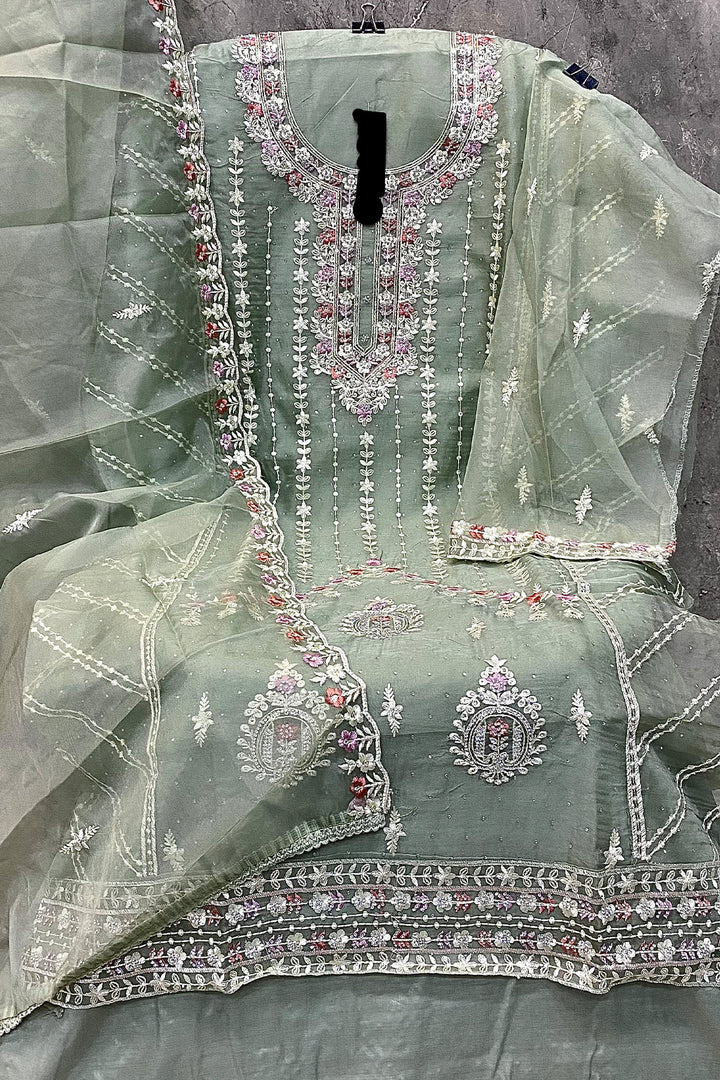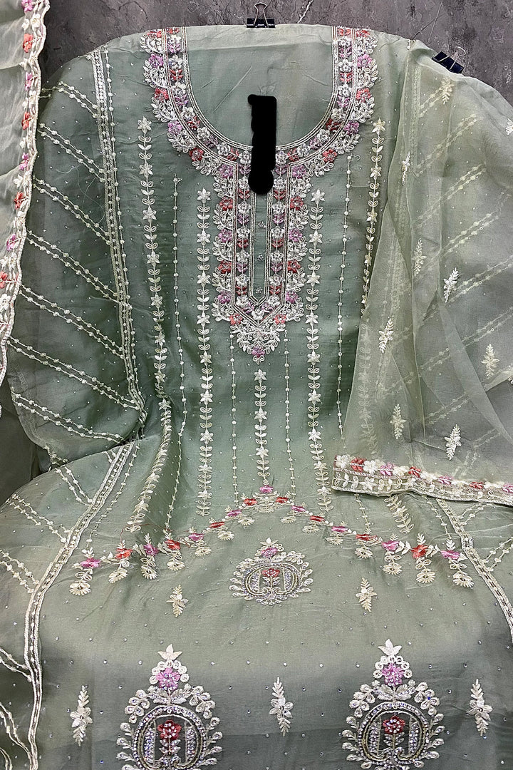 Lovely Pista Pakistani Organza Khatli Work Salwar Kameez With Organza Dupatta Embroidery