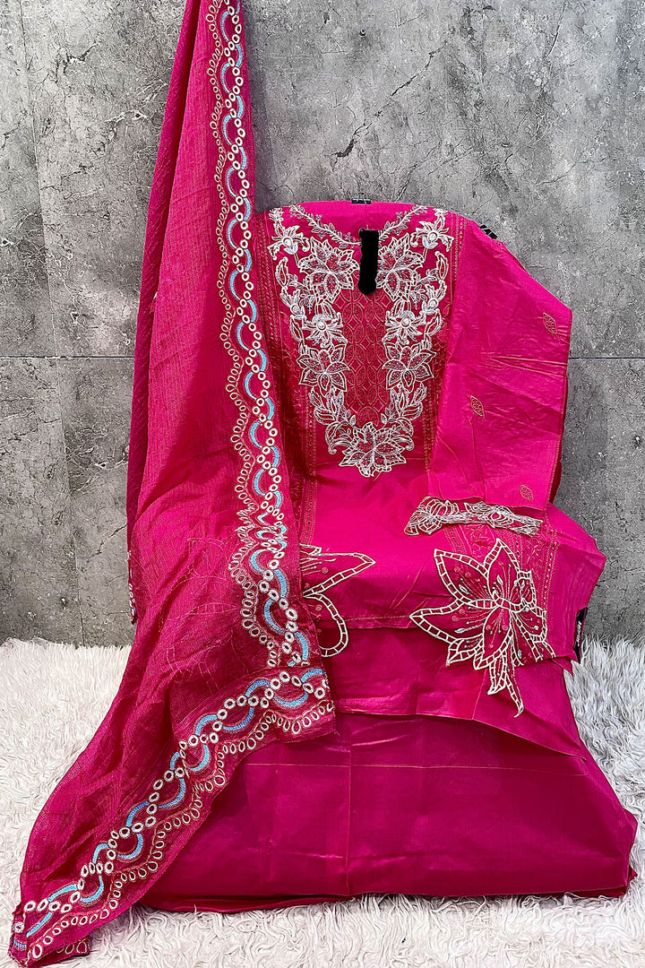Magenta Embroidered Pakistani Salwar Kameez With Beautiful Imported Chex Dupatta