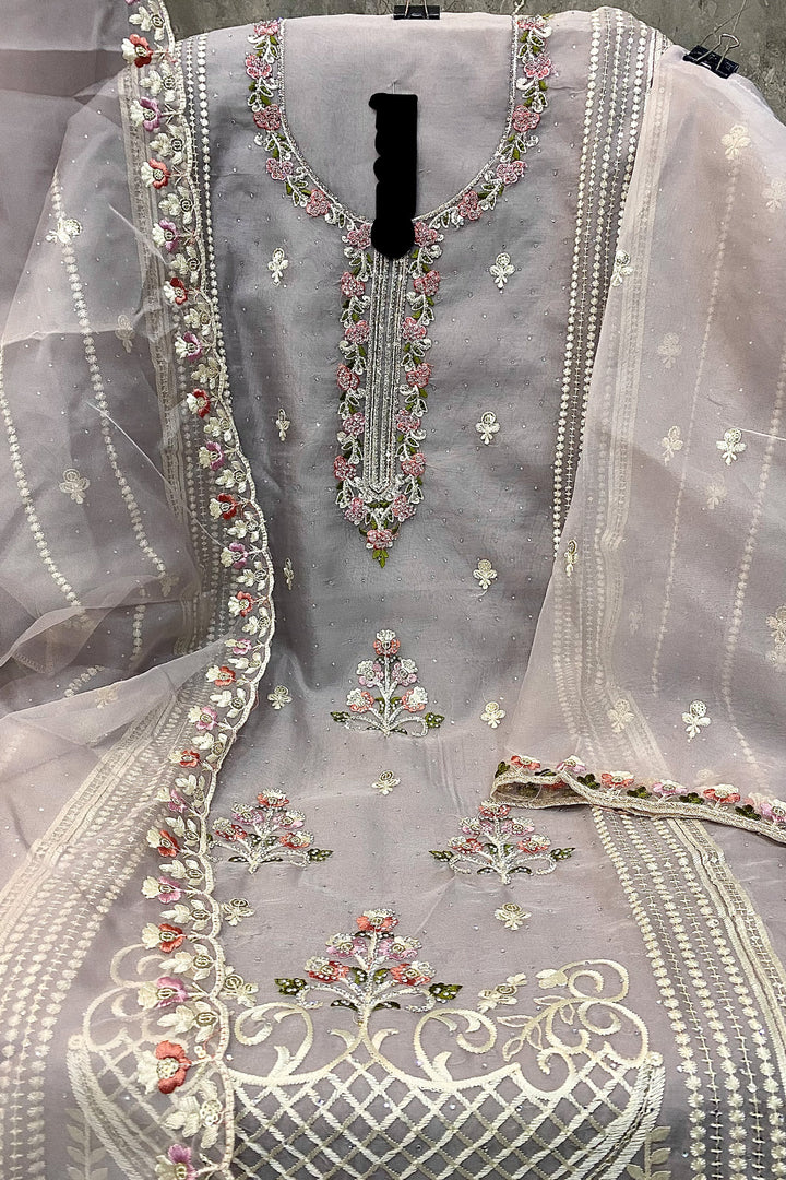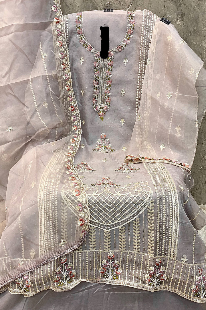 Majestic Gray Handwork Heavy Organza Pakistani Salwar Kameez With Organza Work Dupatta