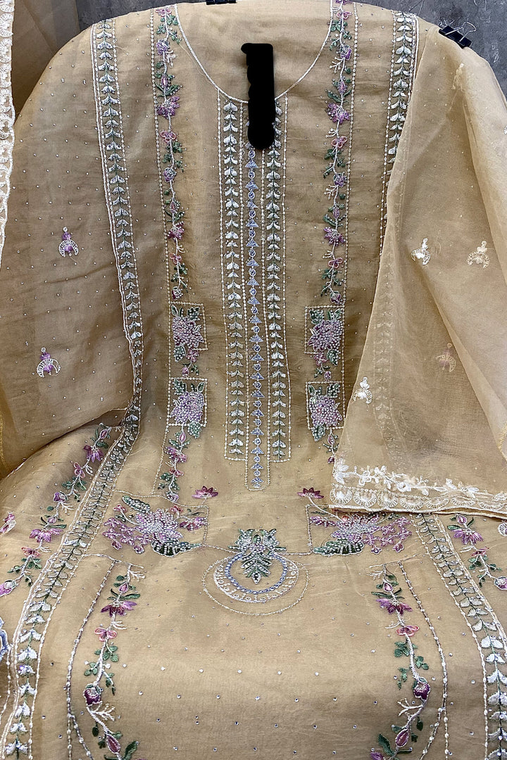 Organza Pakistani Handwork Salwar Kameez Light Mustard WIth Organza Dupatta Work