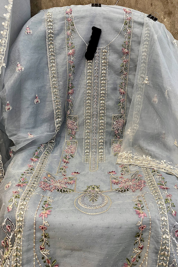 Organza Pakistani Handwork Salwar Kameez Light Sky Blue WIth Organza Dupatta Work