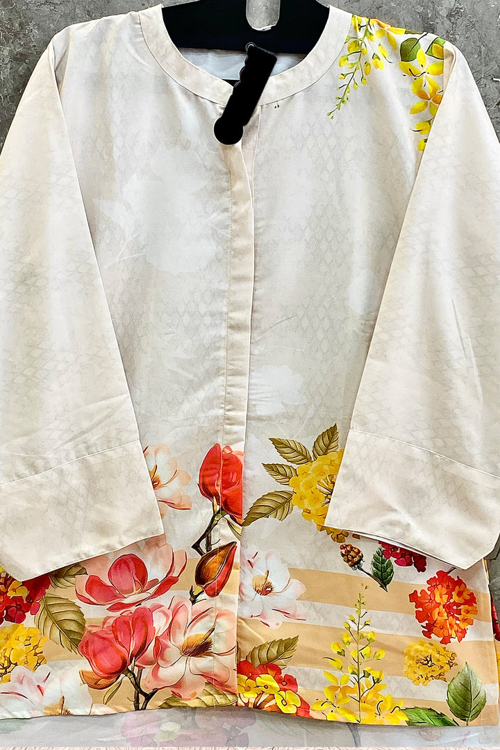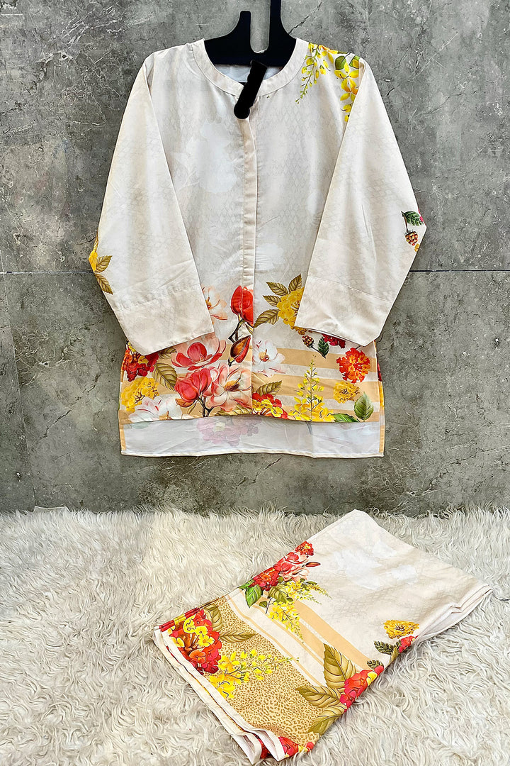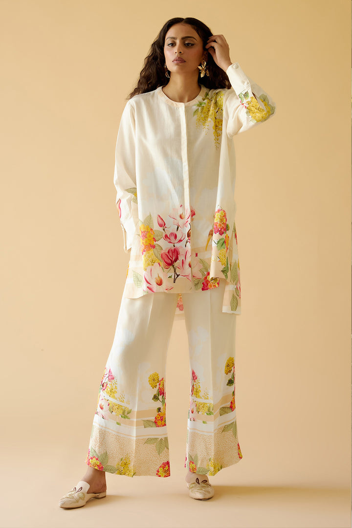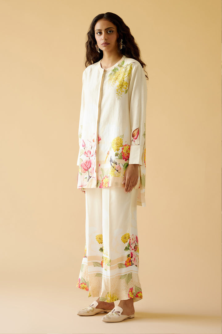 Pakistani Elegant Party Wear Floral Printed Co-Ord Palazzo Set – Cream & Multicolor