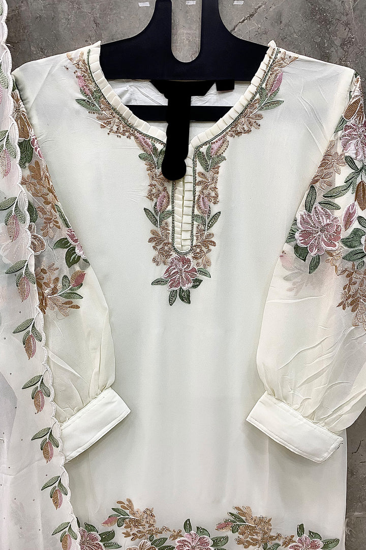 Pakistani Salwar Kameez Georgette White Ethnic Wear With Embroidery Dupatta-Full Stitched