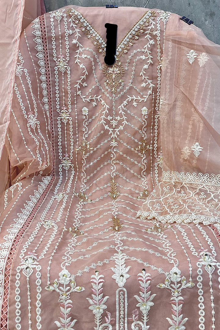 Pakistani Salwar Kameez Handwork Peach Heavy Organza With Pretty Organza Dupatta