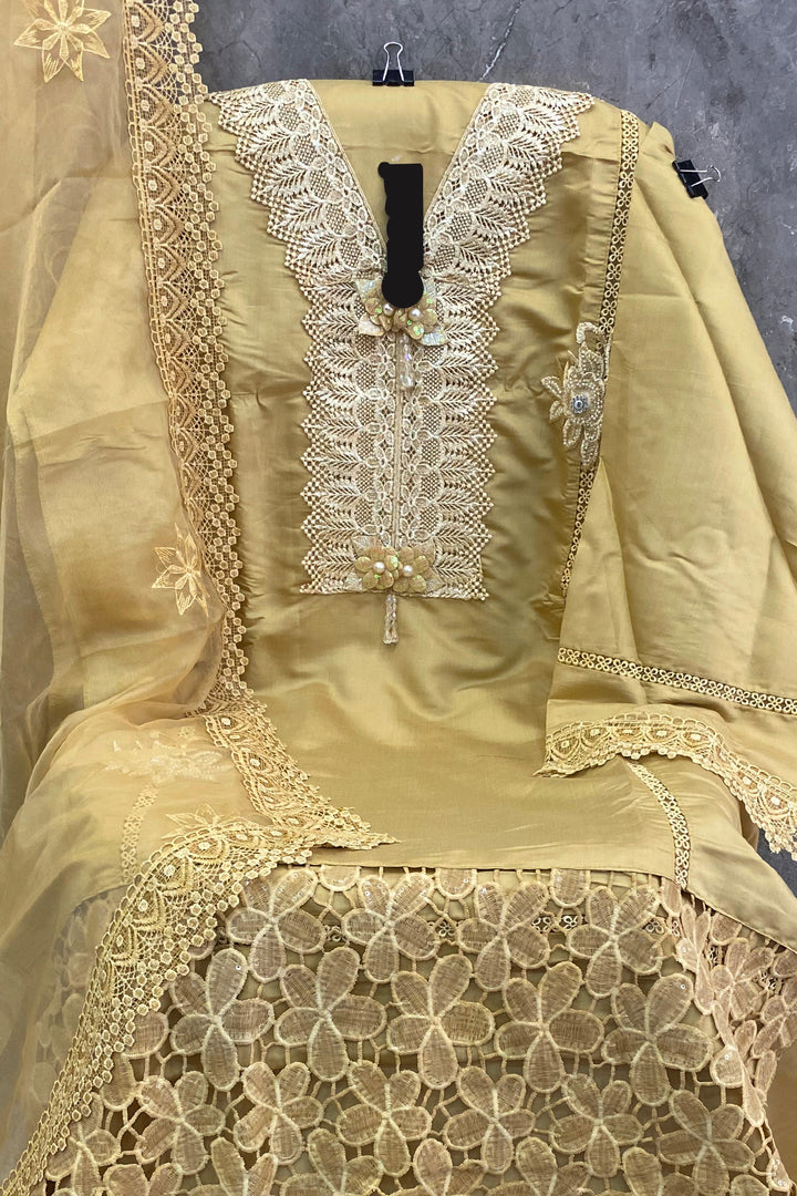 Pakistani Salwar Kameez Imported Korean Royal Mustard With Beautiful Heavy Organza Dupatta