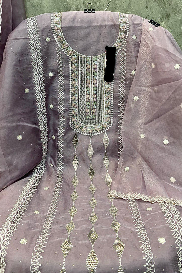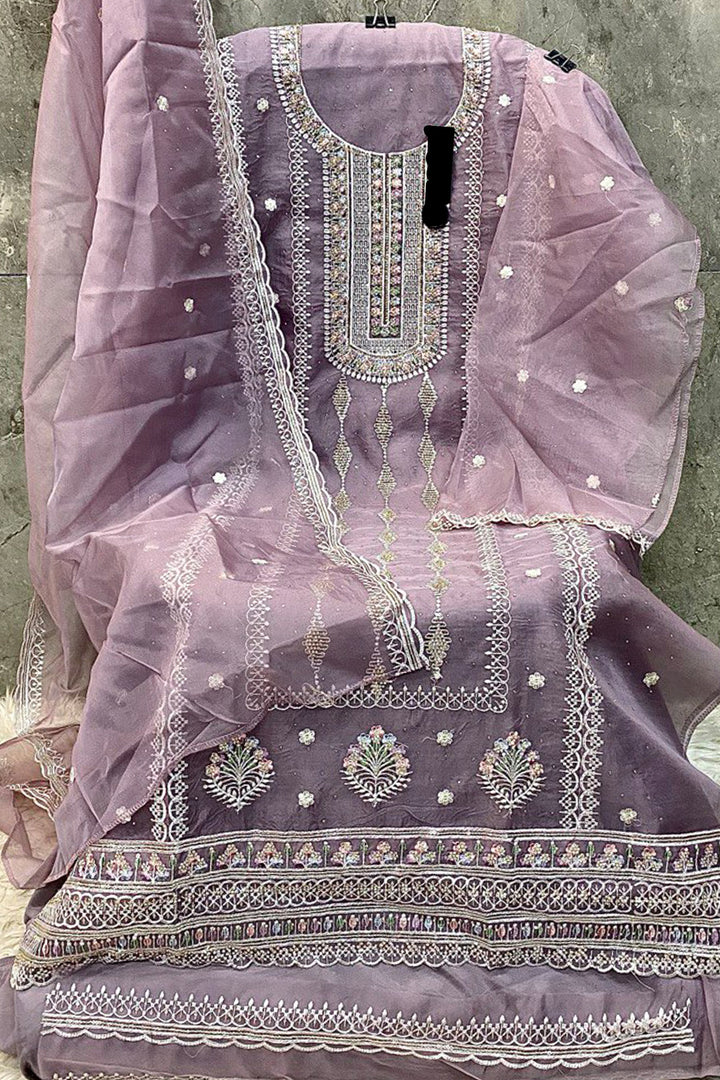 Pakistani Salwar Kameez Organza Khatli Work Light Purple With Organza Dupatta Work