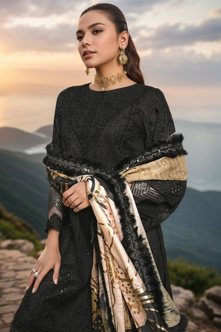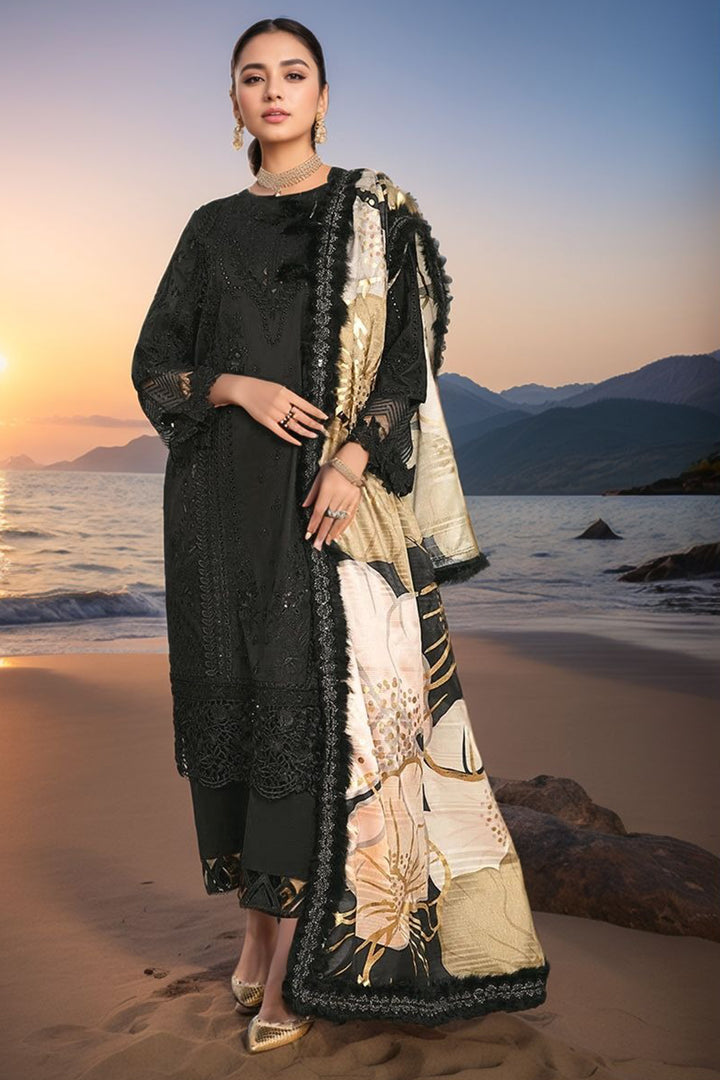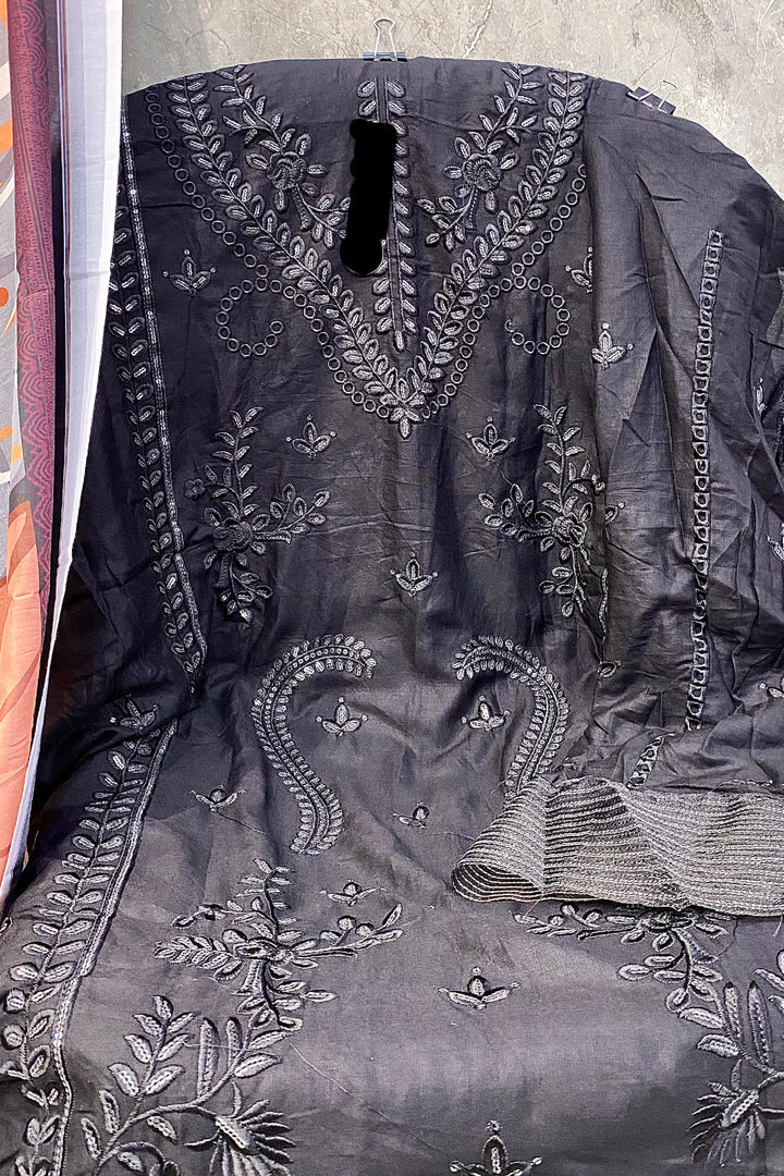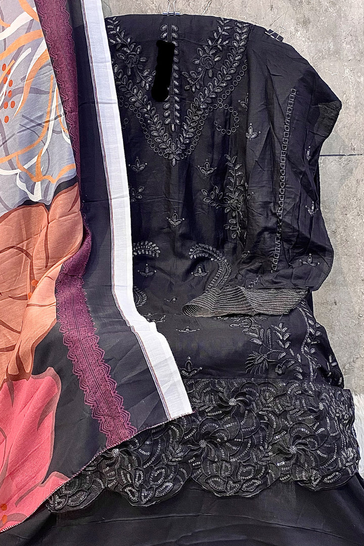 Pakistani Salwar Kameez Straight Cut Heavy Rayon Black With Cotton Printed Dupatta