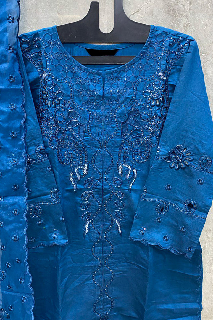 Ready To Wear Blue Pakistani Tunic Premium Viscose with Organza Embroidery Dupatta