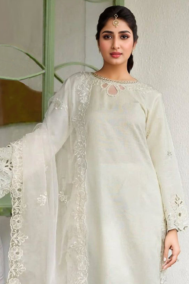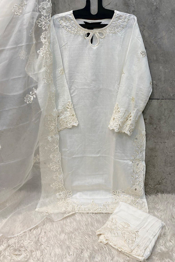 Ready To Wear Cut Work White Pakistani Salwar Kameez Crystal Viscose With Organza Work Dupatta