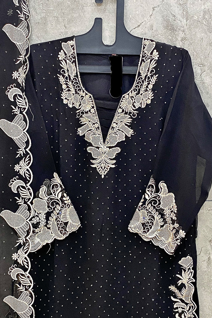 Ready To Wear Pakistani Salwar Kameez Festive Wear Black Georgette With Georgette Dupatta