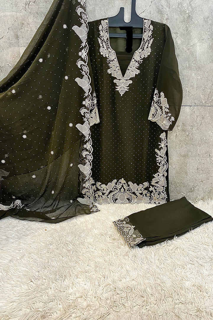 Ready To Wear Pakistani Salwar Kameez Festive Wear Mehndi Georgette With Georgette Dupatta