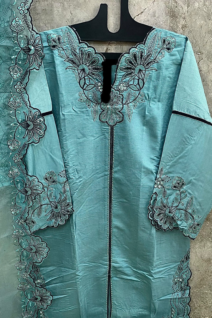 - Dupatta : Heavy Organza (With Embroidery Work + Cut Work Design)