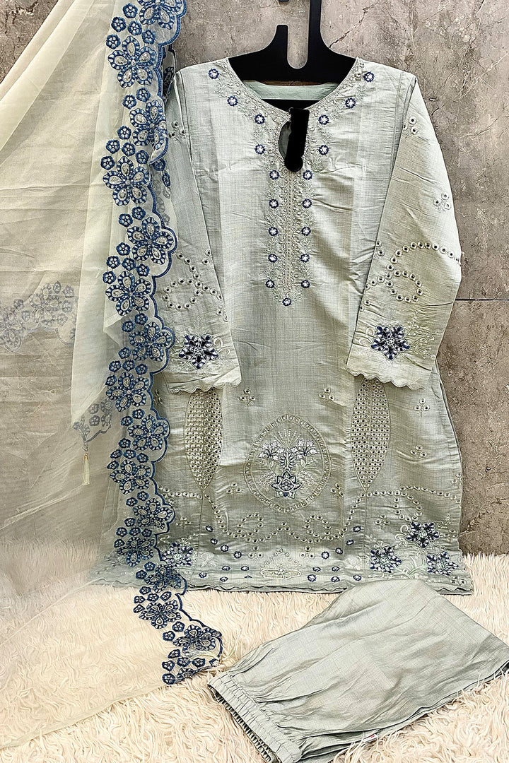 Readymade Designer Crystal Viscose Pakistani Salwar Kameez Light Pista & Organza Dupatta
