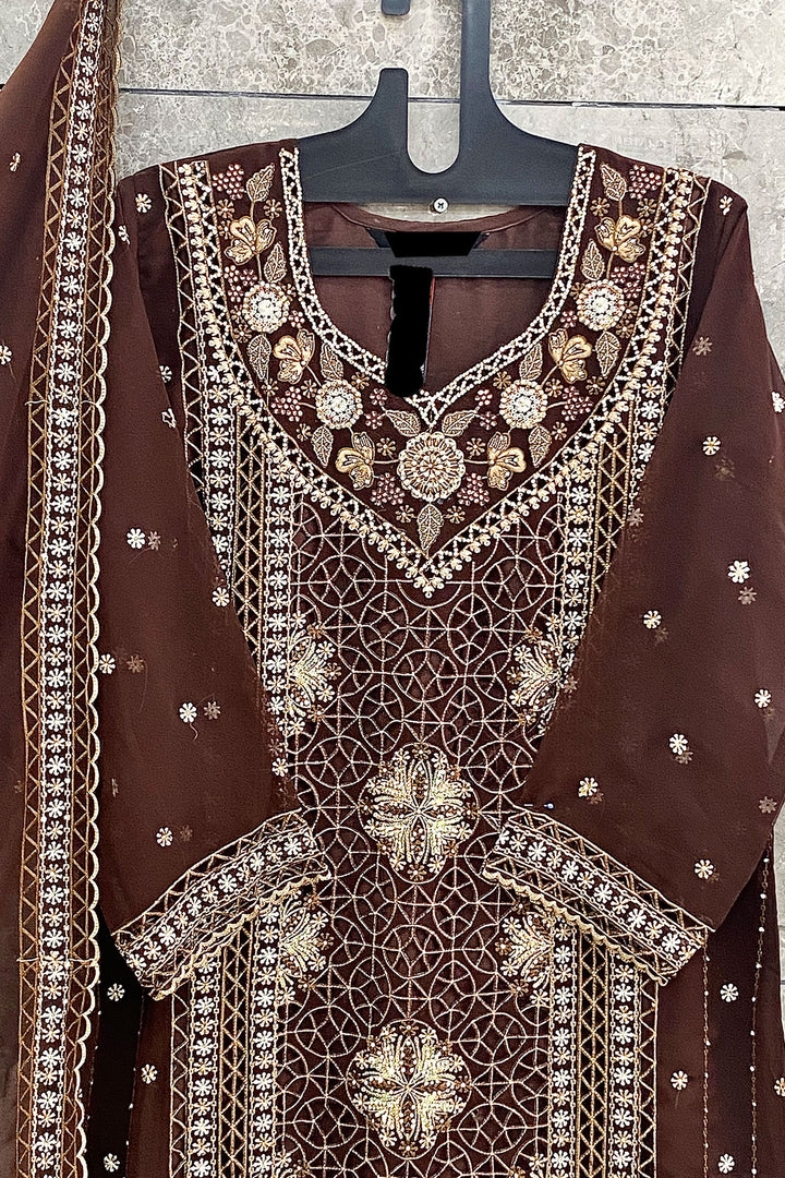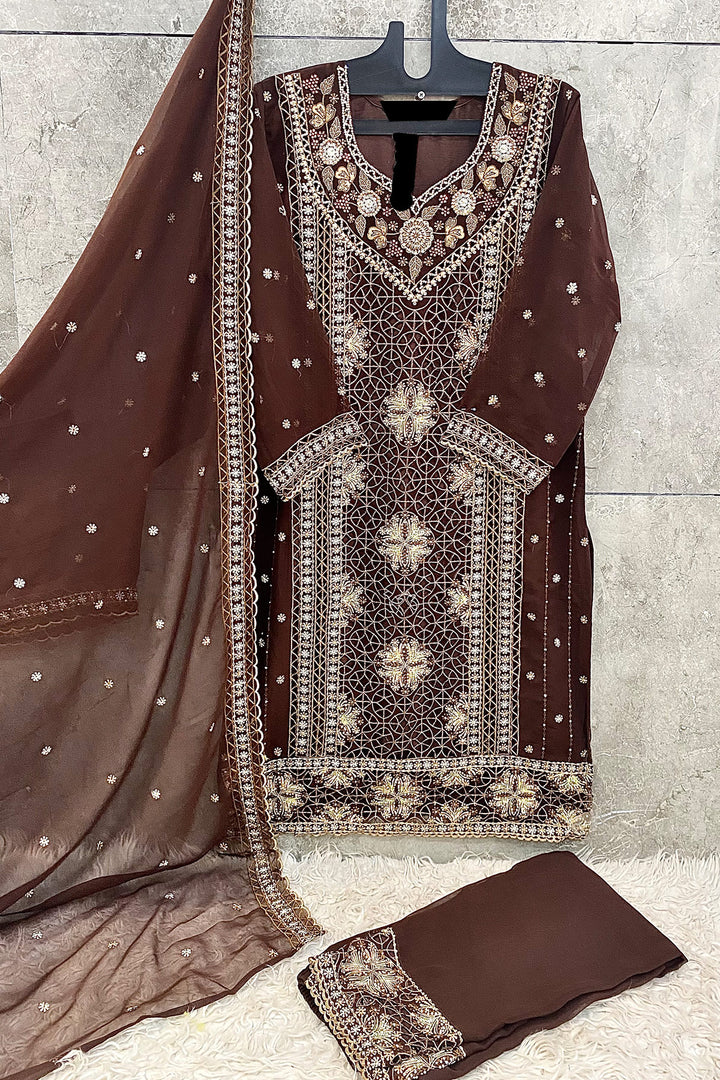 Readymade Luxury Coffy Georgette Pakistani Salwar Kameez Embroidered Suit With Georgette Dupatta