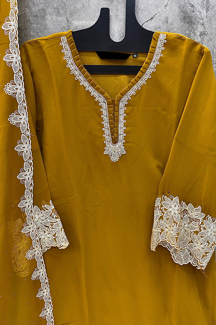 Readymade Outfit Georgette Pakistani Salwar Kameez Lemon With Georgette Dupatta