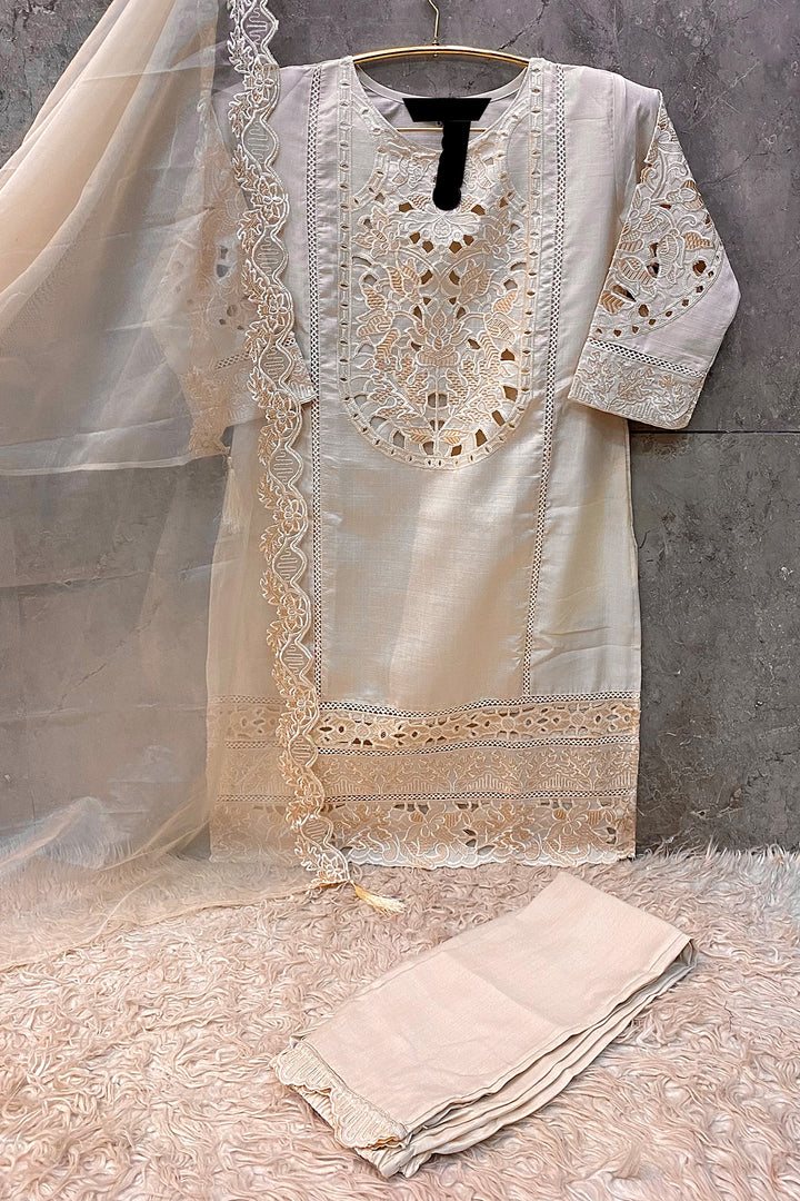 - Dupatta : Heavy Organza ( With Embroidery Work + Cut Work Design )
