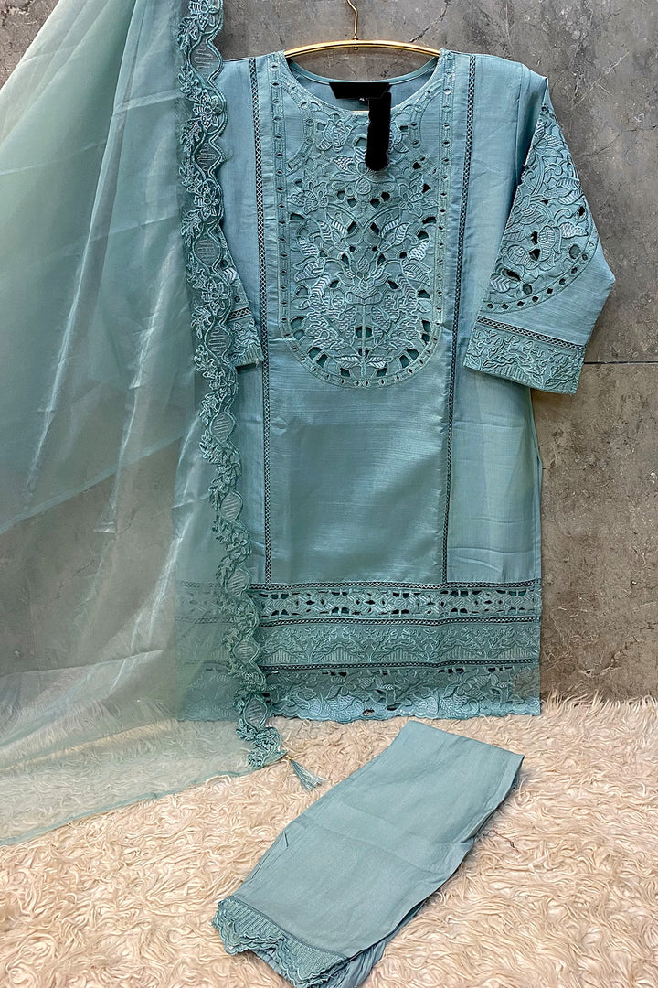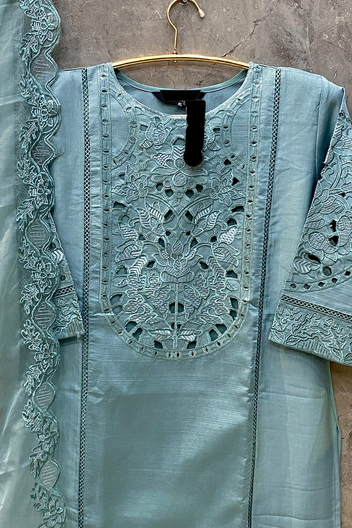 - Dupatta : Heavy Organza ( With Embroidery Work + Cut Work Design )