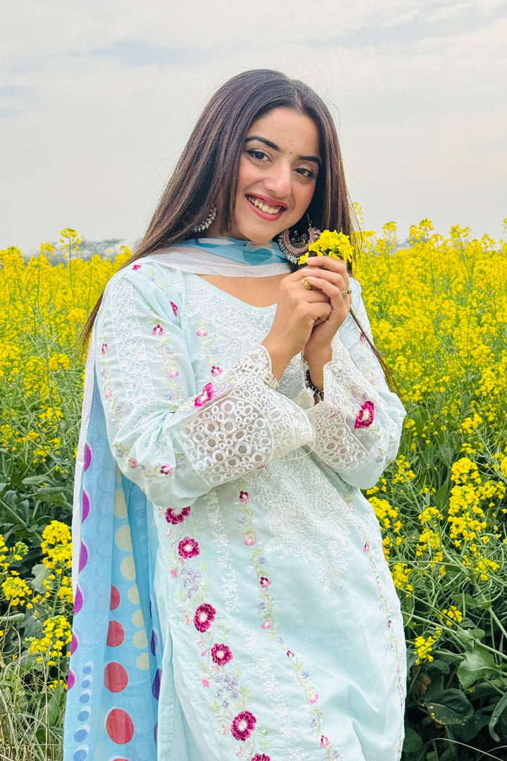 Stunning Sky Blue Pakistani Salwar Kameez Cotton With Beautiful Nazneen Dupatta